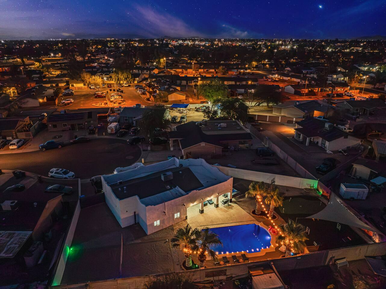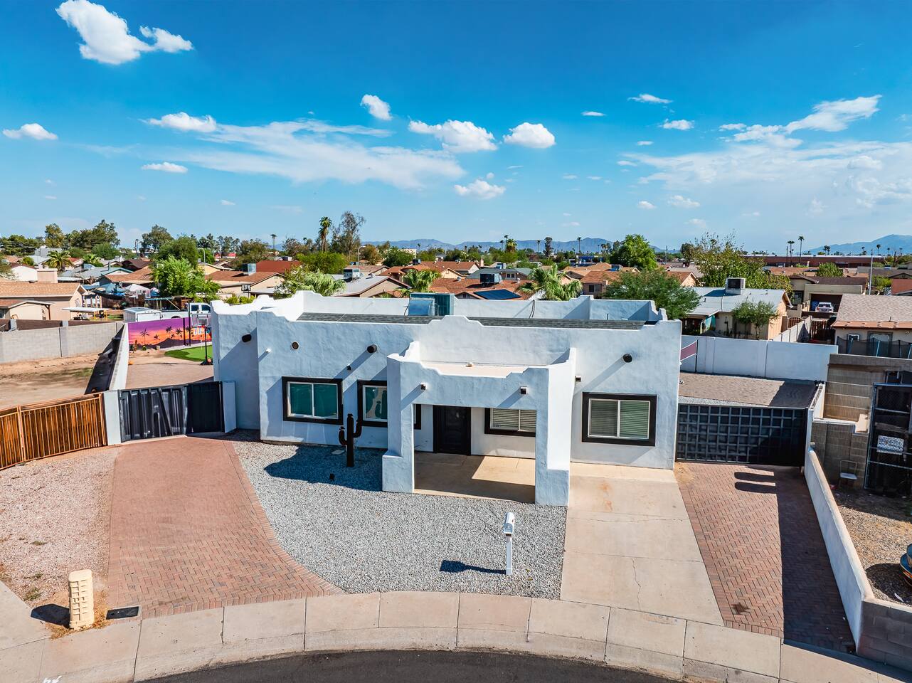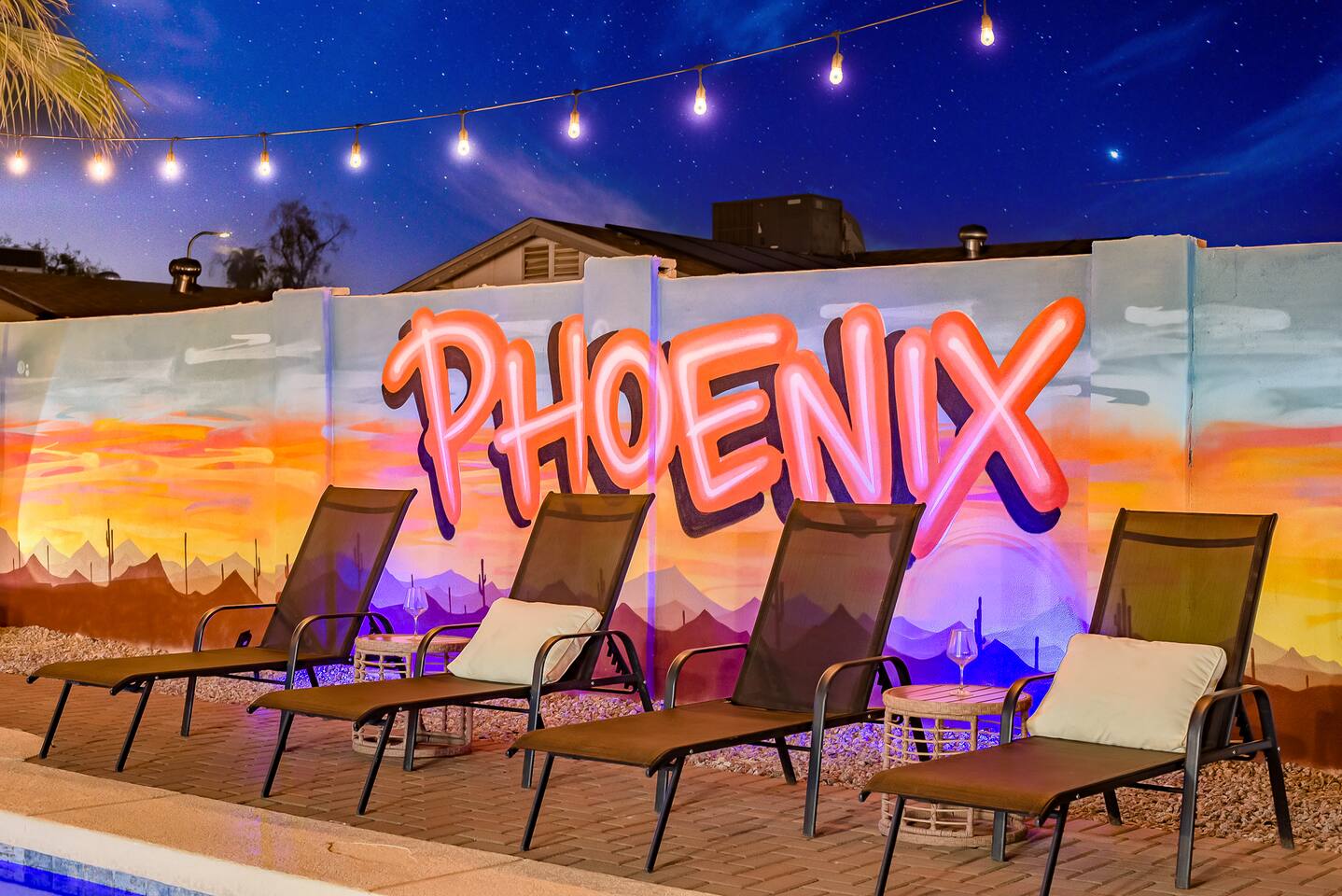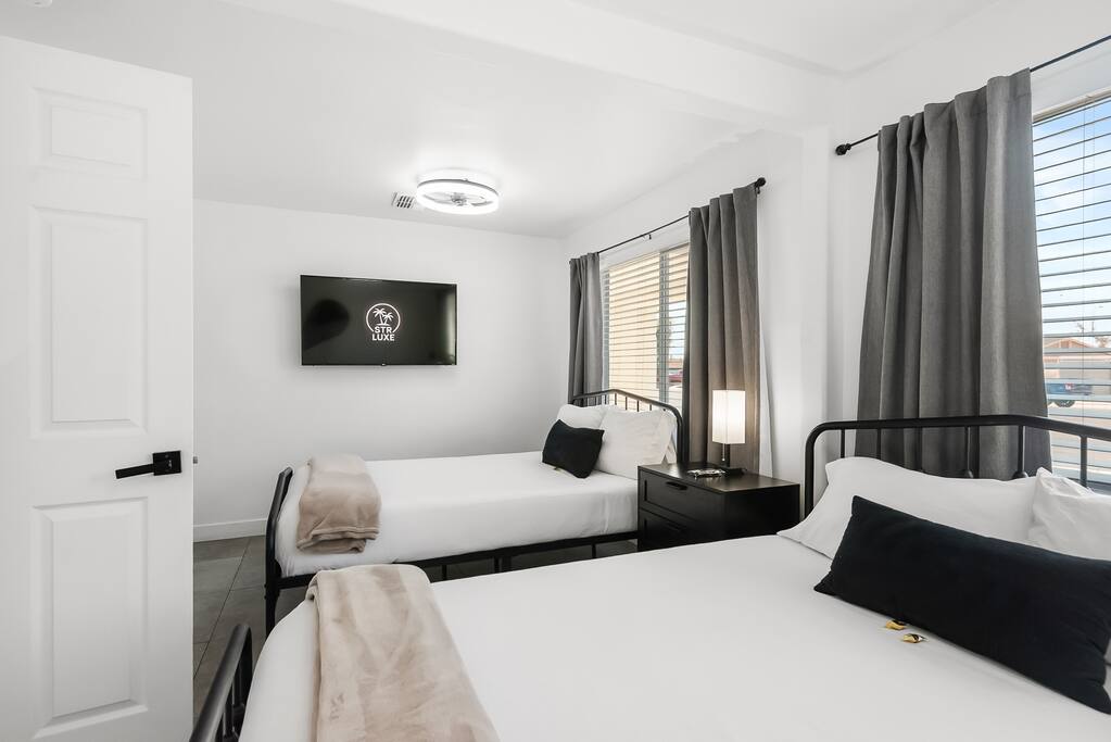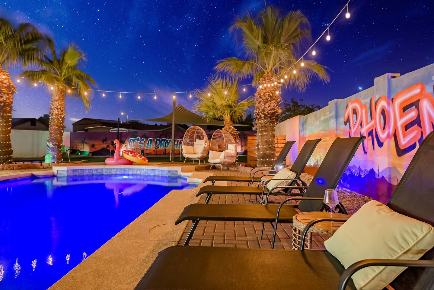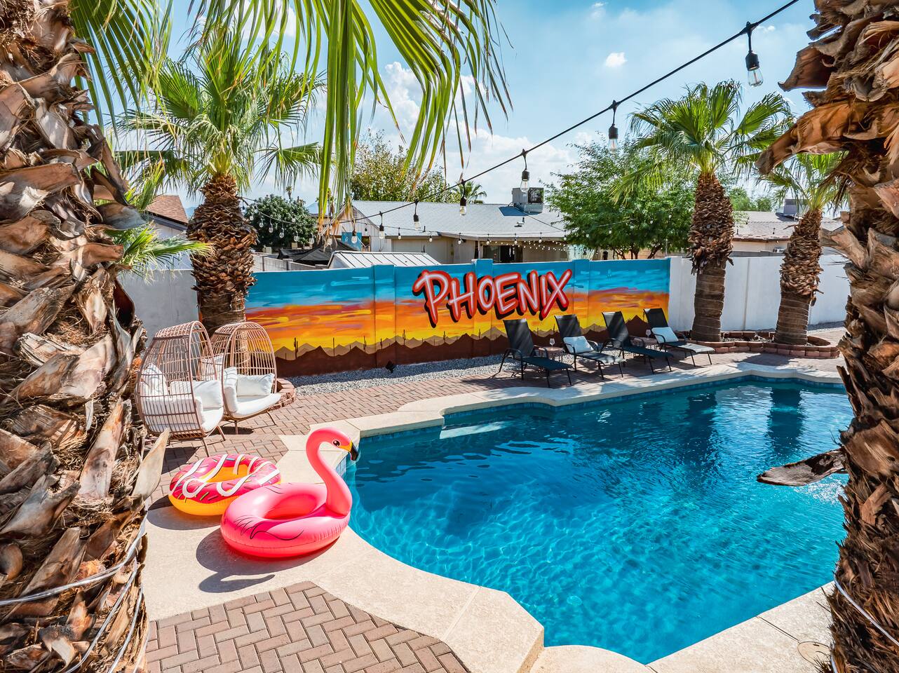 KEY INDOOR FEATURES: ☀️ 3 beautiful bedrooms: 1 king 65" smart TV, 1 queen 50" smart TV, & 2 full beds 50" smart TV 🌵Living room features a queen sleeper sectional ☀️ Additional single pullout bed in closet for an extra guest 🌵2 full bathrooms ☀️ Modern kitchen with stainless steel appliances 🌵 Open living room with lots of comfy seating & 75" smart TV ☀️ Dining room with seating to comfortably accommodate 8 (+ 3 countertop seats) 🌵 3 full size Arcades with a wide selection of games ☀️ High Speed Wifi KEY OUTDOOR FEATURES: ☀️ Large heated Diving pool with LED lighting - ** Pool Heat is available for an extra fee** 🌵 Blackstone Flat top grill ☀️ 4 comfy lounge chairs for tanning 🌵 Fire table with Seating ☀️Outdoor shower 🌵 Volleyball / Badminton court ☀️3 hole putting green 🌵 basketball net ☀️ Shaded Turf area for lawn games including corn hole, connect 4 and SO much more ! 🌵 Giant wall murals inside and out — makes for an awesome back drop for photos with friends and family ! ☀️ 6 person Hot Tub 🌵55" TV on a rolling Stand to Catch the game from the fireable, poolside, the Hot Tub or wherever suits your style! 12mi to Phoenix Sky Airport ⚾️🧢 World Series Champions LA Dodgers & Chicago white Sox’s 🧦 Spring Training 7 miles away ⚾️ Milwaukee Brewers Spring Training 2.4 Miles Away Nearby golf - Grand Canyon university championship golf course 2.3 miles - Desert mirage 5.9 miles - Cold water golf club 9.3 miles - Palm valley golf club 11.6 miles - Falcon dunes golf course 15.3 miles - Top Golf 6.7 miles Event Centres: 2.4mi to Talking Stick Resort Amphitheatre 6.5mi to Westgate (cardinals stadium) 11mi to Chase field (diamondbacks MLB) 11mi to footprint centre (Phoenix suns) Banner Estrella Hospital 3.5 Miles Guest access All of it! Entire home, Many extras. Property is professionally cleaned and sanitized between every guest !