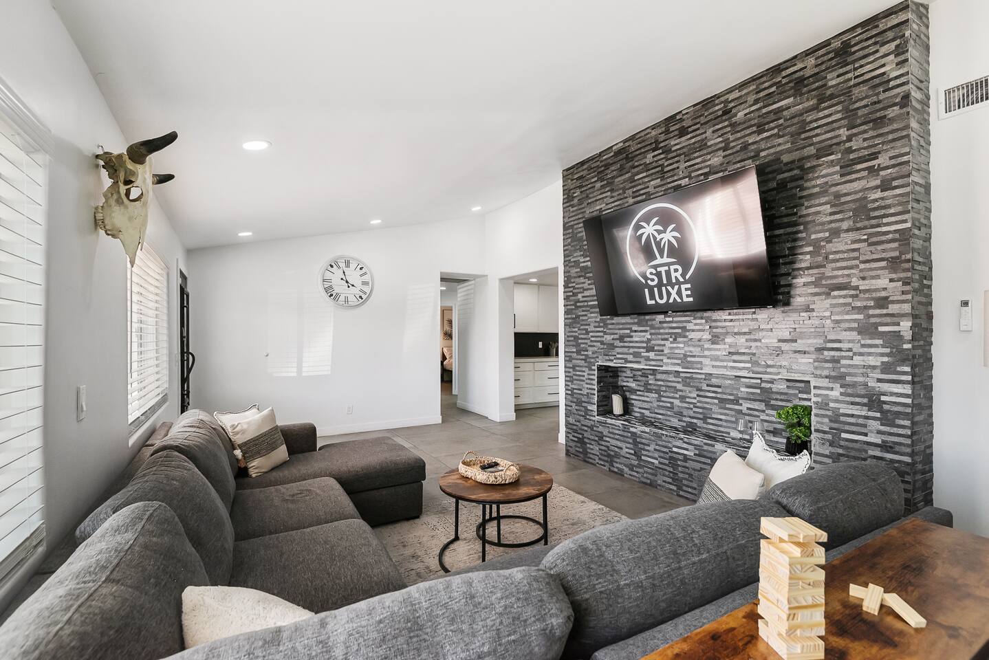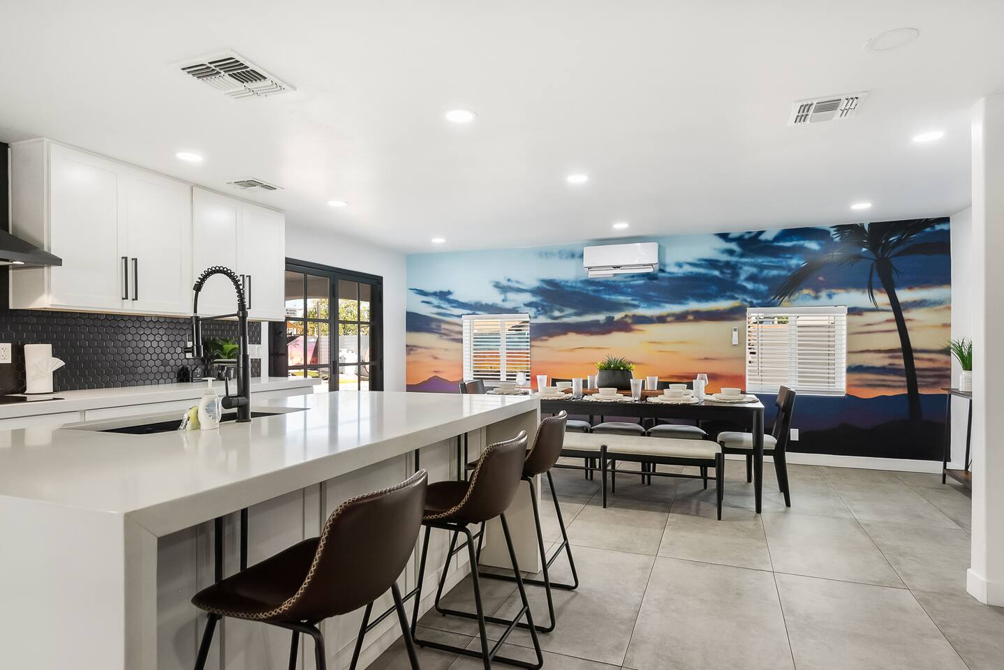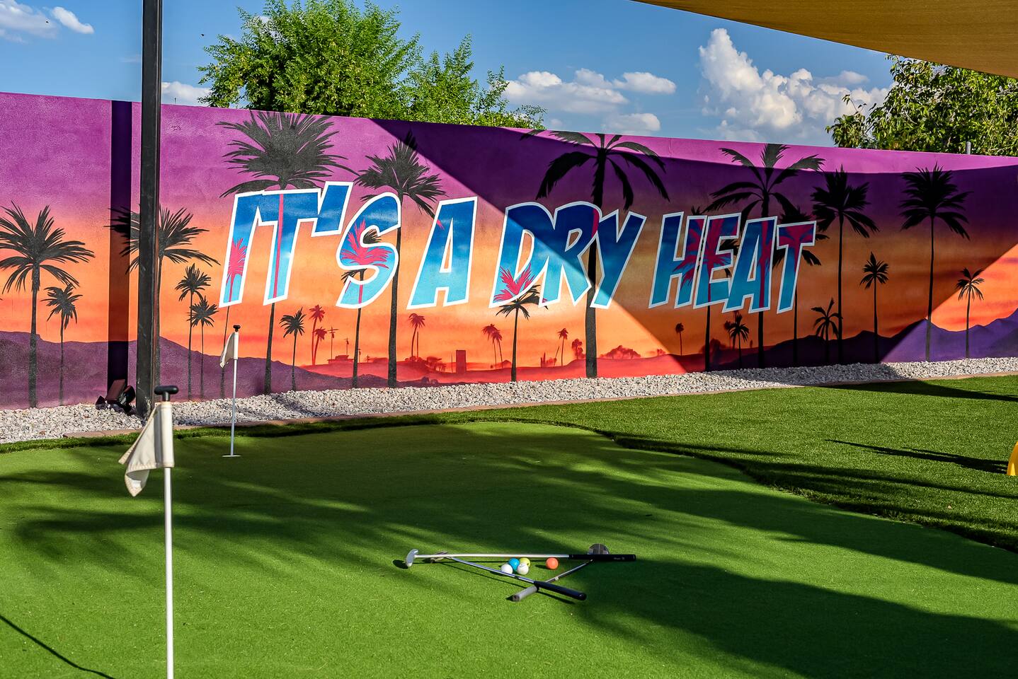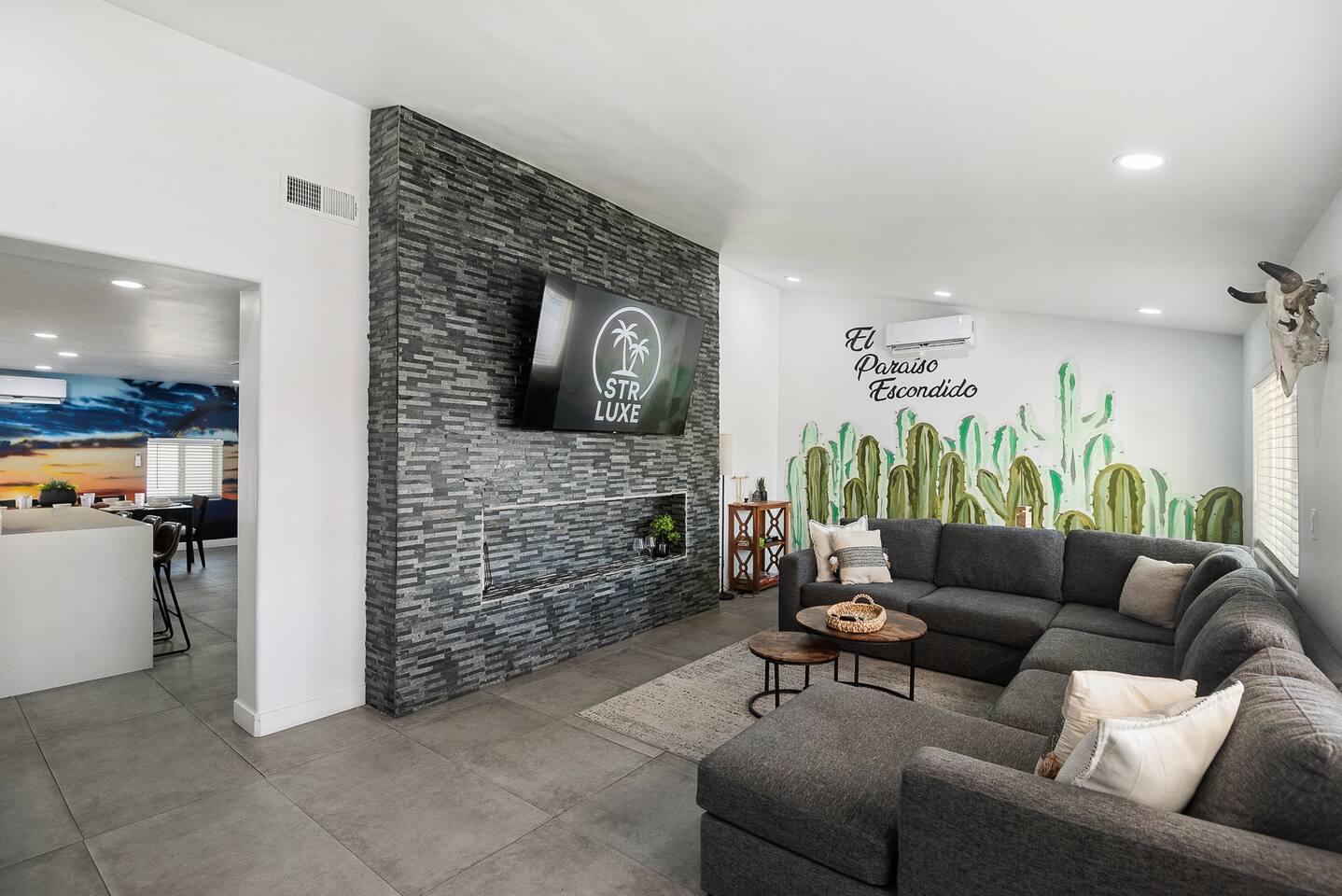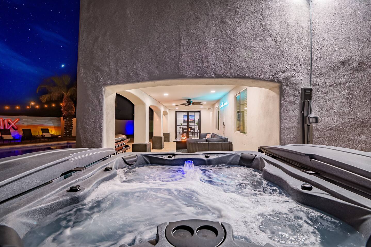 KEY INDOOR FEATURES: ☀️ 3 beautiful bedrooms: 1 king 65" smart TV, 1 queen 50" smart TV, & 2 full beds 50" smart TV 🌵Living room features a queen sleeper sectional ☀️ Additional single pullout bed in closet for an extra guest 🌵2 full bathrooms ☀️ Modern kitchen with stainless steel appliances 🌵 Open living room with lots of comfy seating & 75" smart TV ☀️ Dining room with seating to comfortably accommodate 8 (+ 3 countertop seats) 🌵 3 full size Arcades with a wide selection of games ☀️ High Speed Wifi KEY OUTDOOR FEATURES: ☀️ Large heated Diving pool with LED lighting - ** Pool Heat is available for an extra fee** 🌵 Blackstone Flat top grill ☀️ 4 comfy lounge chairs for tanning 🌵 Fire table with Seating ☀️Outdoor shower 🌵 Volleyball / Badminton court ☀️3 hole putting green 🌵 basketball net ☀️ Shaded Turf area for lawn games including corn hole, connect 4 and SO much more ! 🌵 Giant wall murals inside and out — makes for an awesome back drop for photos with friends and family ! ☀️ 6 person Hot Tub 🌵55" TV on a rolling Stand to Catch the game from the fireable, poolside, the Hot Tub or wherever suits your style! 12mi to Phoenix Sky Airport ⚾️🧢 World Series Champions LA Dodgers & Chicago white Sox’s 🧦 Spring Training 7 miles away ⚾️ Milwaukee Brewers Spring Training 2.4 Miles Away Nearby golf - Grand Canyon university championship golf course 2.3 miles - Desert mirage 5.9 miles - Cold water golf club 9.3 miles - Palm valley golf club 11.6 miles - Falcon dunes golf course 15.3 miles - Top Golf 6.7 miles Event Centres: 2.4mi to Talking Stick Resort Amphitheatre 6.5mi to Westgate (cardinals stadium) 11mi to Chase field (diamondbacks MLB) 11mi to footprint centre (Phoenix suns) Banner Estrella Hospital 3.5 Miles Guest access All of it! Entire home, Many extras. Property is professionally cleaned and sanitized between every guest !