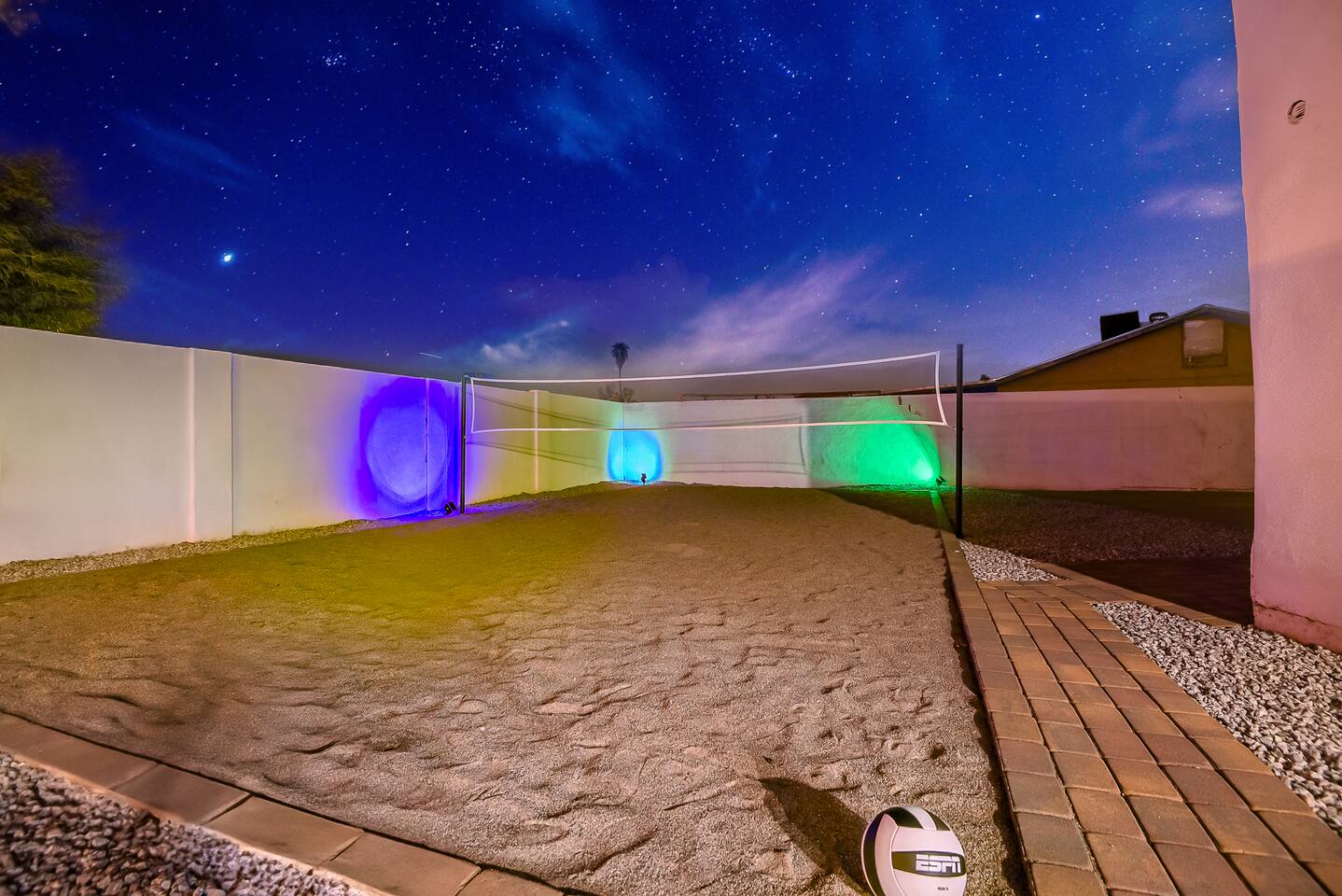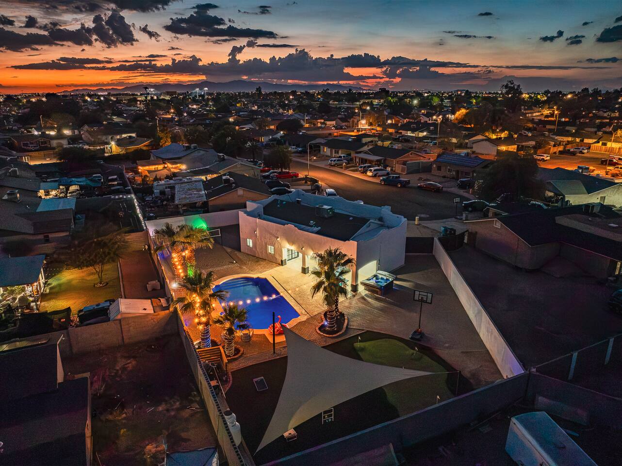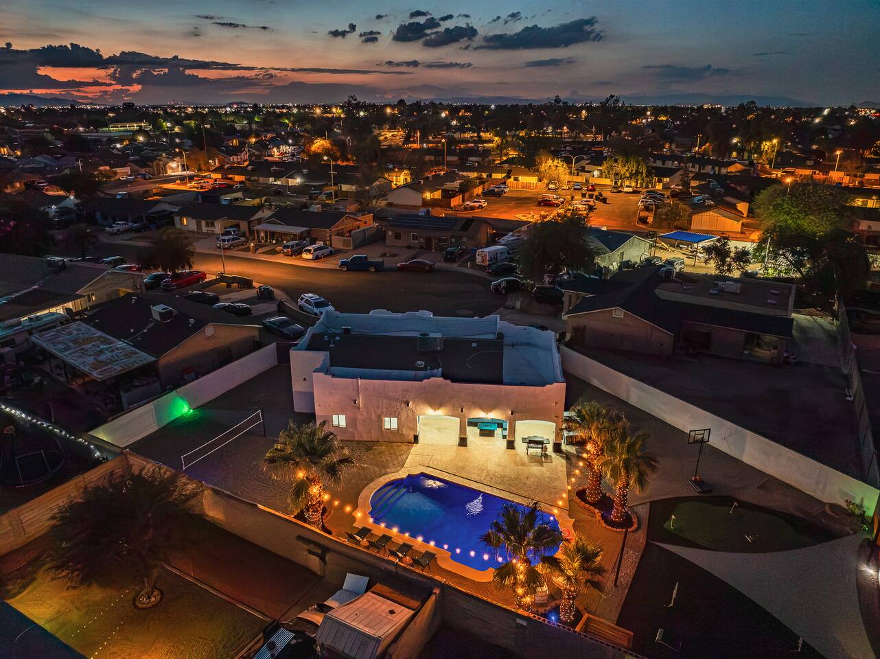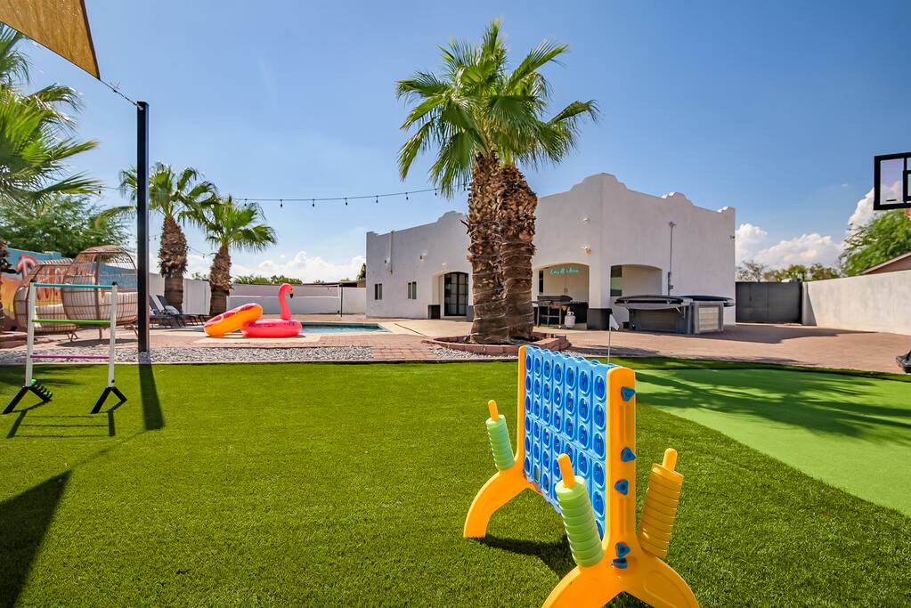 Phoenix Villa — the ultimate multi-family retreat! Dive into the pool, soak in the hot tub, or gather by the fire table. Play sand volleyball, basketball, yard games, or the 3-hole putting green, then head inside for arcade fun. With smart TVs in every bedroom and plenty of space, this villa is designed for comfort, style, and unforgettable memories. A true resort-style escape just minutes from Phoenix’s top attractions! You’ll never want to leave !!